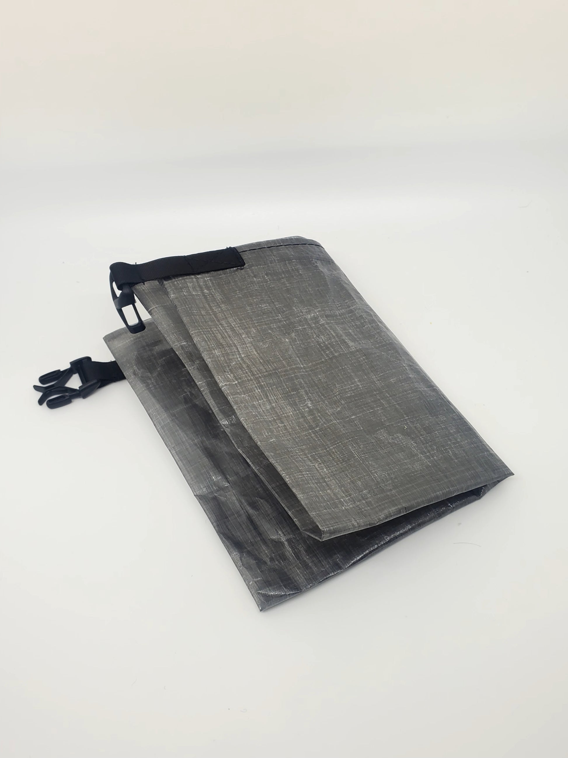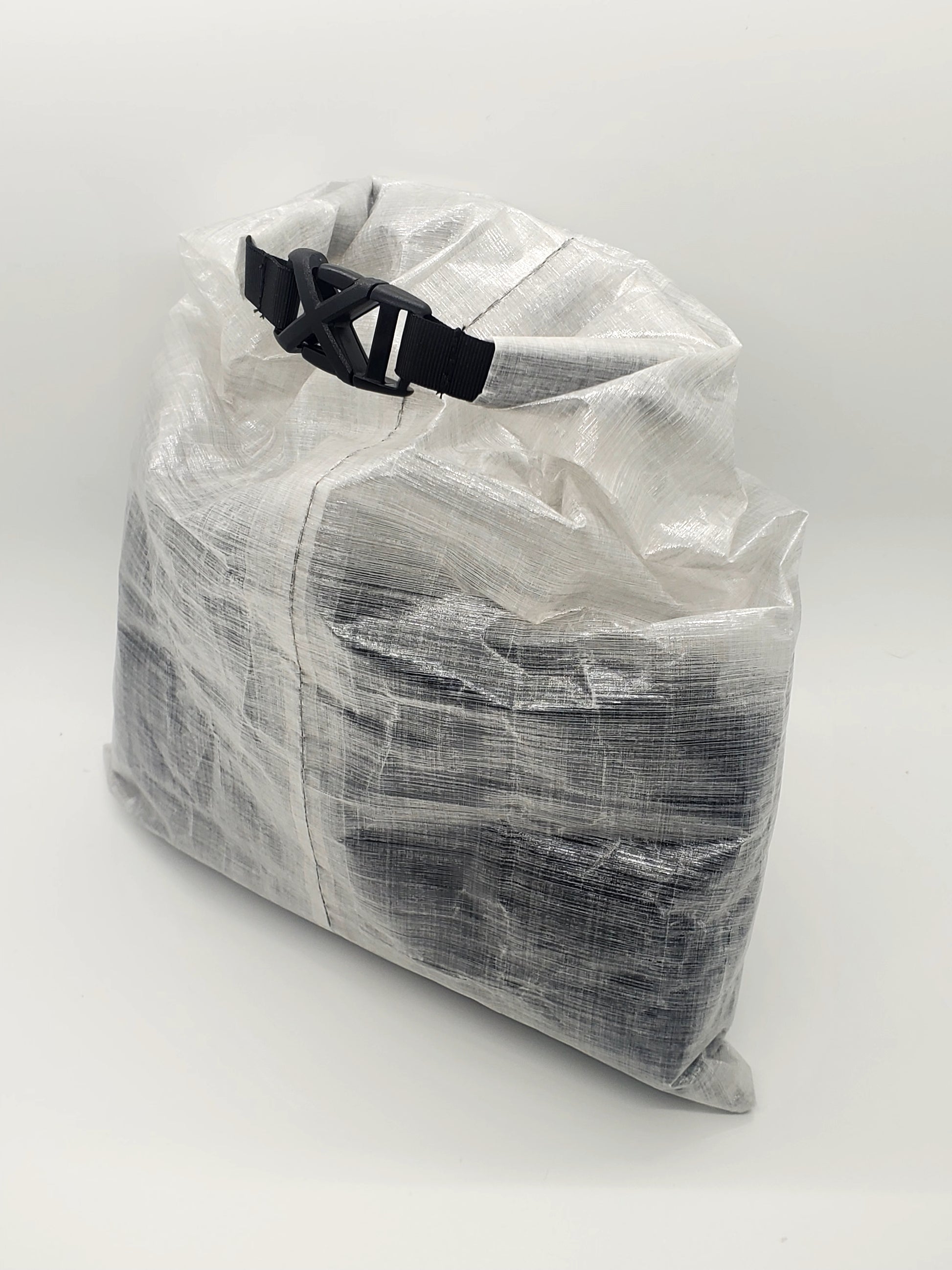 Made with Dyneema composite waterproof material. All seams are fully seam taped to ensure the bags are waterproof. Currently we offer this model in two colors, standard white Dyneema and also black Dyneema. This item uses a 5/8" XCross plastic buckle attached with 1/2" Grosgrain